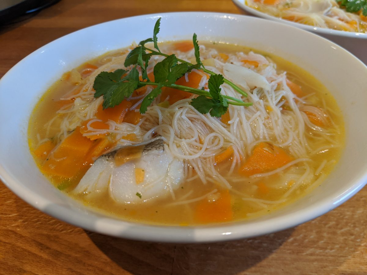 Asian style fish broth with noodles